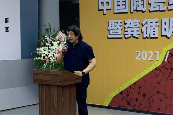 景德鎮(zhèn)陶瓷大學(xué)原校長(zhǎng)寧鋼宣布展覽開(kāi)幕