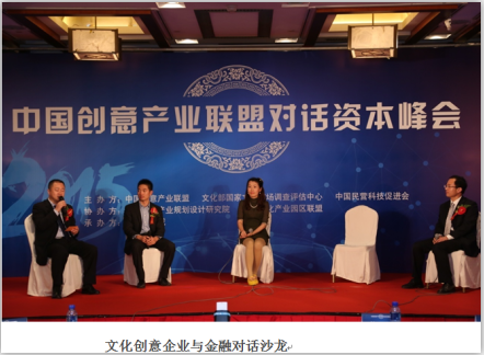 在隨后的文化創(chuàng)意企業(yè)與金融對話沙龍中,聯(lián)合恒泰基金董事邢國峰與工商銀行北京分行公司中小企業(yè)金融部副總經(jīng)理白雪、北京合何潤鑫投資管理有限公司總經(jīng)理魏武群、首都建設投資引導基金投資部總經(jīng)理侯寬共論文化創(chuàng)意產(chǎn)業(yè)如何高效地跟金融資本有效地結合。嘉賓達成共識:無論是國有的大的金融機構還是從國有的投資基金,還是從民營投資機構本身來說對文化創(chuàng)意產(chǎn)業(yè)會有不斷持續(xù)加大的力度,相信在未來文化創(chuàng)意產(chǎn)業(yè)一定會有非常大的發(fā)展。