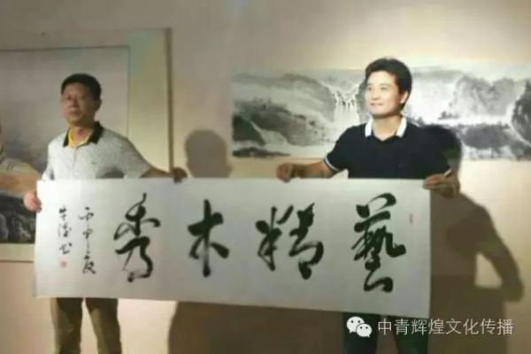 為福建海峽藝雕城總裁何總創(chuàng)作書(shū)法《藝精木秀》