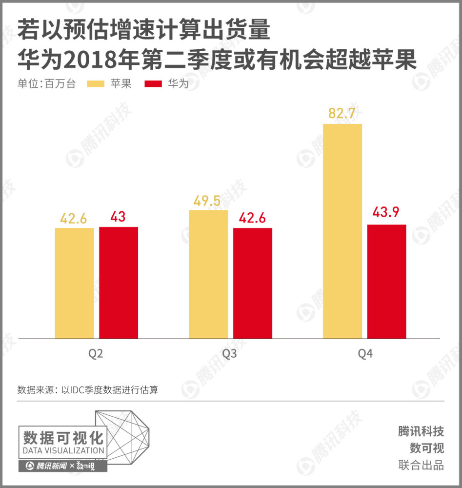 若根據(jù)上述估算增速,計(jì)算兩品牌今年Q2至Q4的出貨量,結(jié)果顯示華為有機(jī)會(huì)在第二季度、也就是蘋果的銷售淡季中,以微幅差距反超。